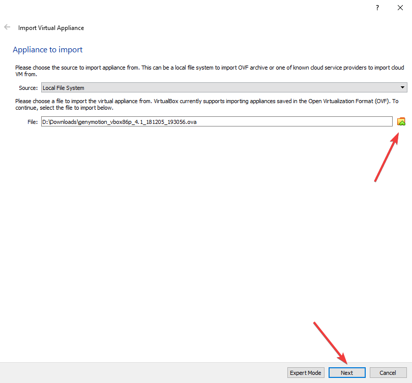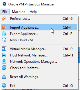 Close Genymotion and open VirtualBox. Go to File and choose Import Appliance.
