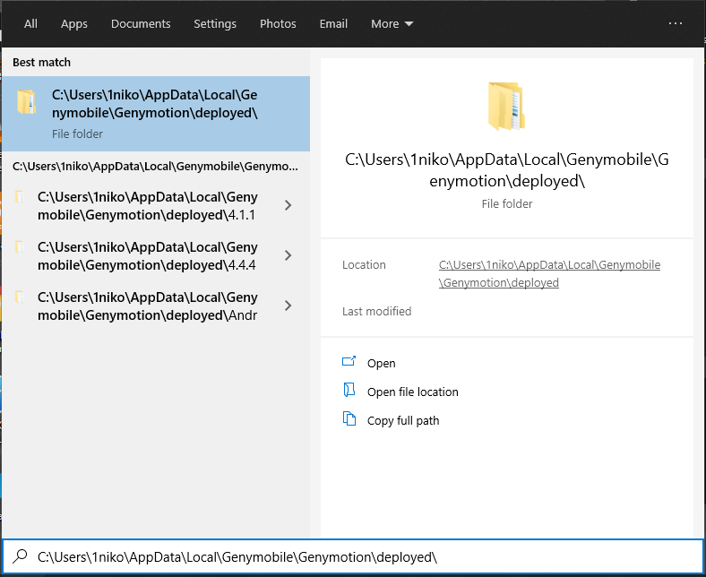Make sure VirtualBox is closed and navigate to the folder from Step 2. On Windows 10 you can paste the path in the Search and hit enter.