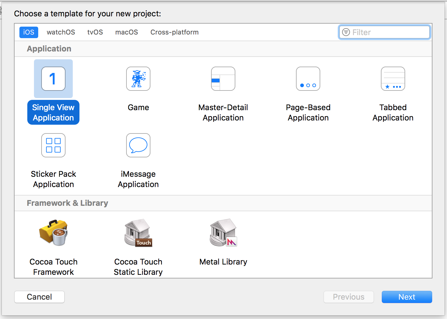 以上をすすめると最後にプロジェクトを保存するパスを指定するダイアログが出てきますので、お好きな場所に保存すると良いでしょう。これでひとまず iOS アプリ開発のためのひな形を作成することができました。この状態で Command + R (アプリ実行へのショートカットキー) を押すと、iOSシミュレーターが立ち上がり、真っ白な画面が表示されると思います。