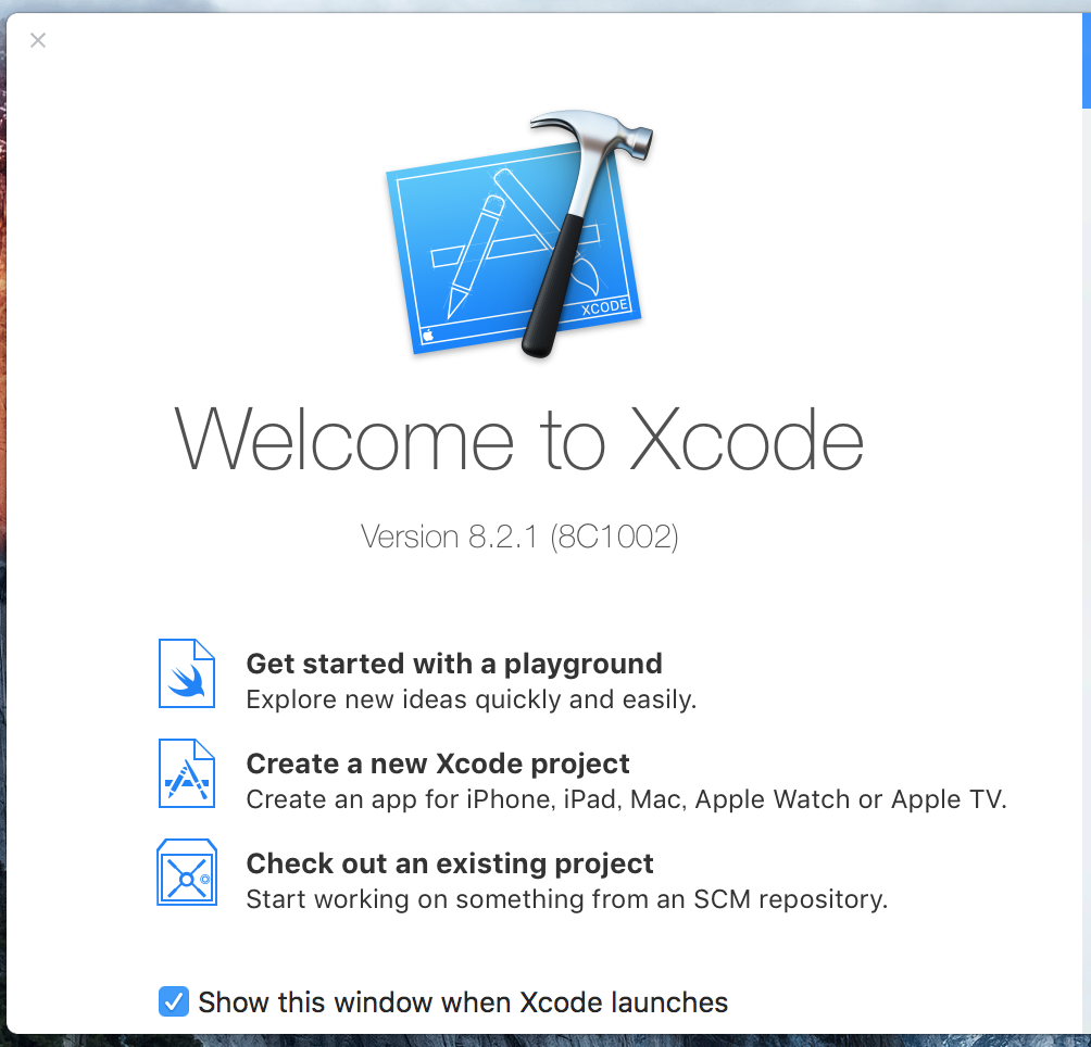 Xcode を起動し、 Create a new Xcode project を選択してください。