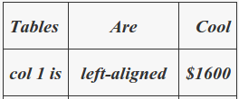 - O suporte à tabela Markdown é projetado para lidar com a maioria das tabelas para a maioria das pessoas; não cobre todas as tabelas para todas as pessoas. Se você precisa de tabelas complexas, você precisará criá-las manualmente ou com uma ferramenta especificamente projetada para o formato de saída.