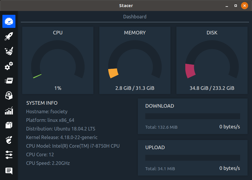 Stacer to keep track of CPU, Memory, Dashboard, a much more aesthetic and performance wise better alternative of its Windows counterpart CCleaner. ๐ฏ โป๏ธ ๐ ๐ด