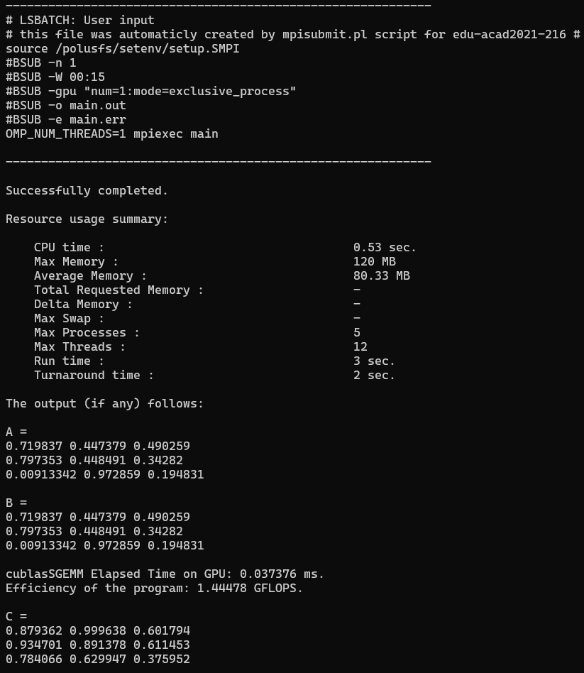 | std::cout << "cublasSGEMM Elapsed Time on GPU: " << msecs << " ms.\n"; | |