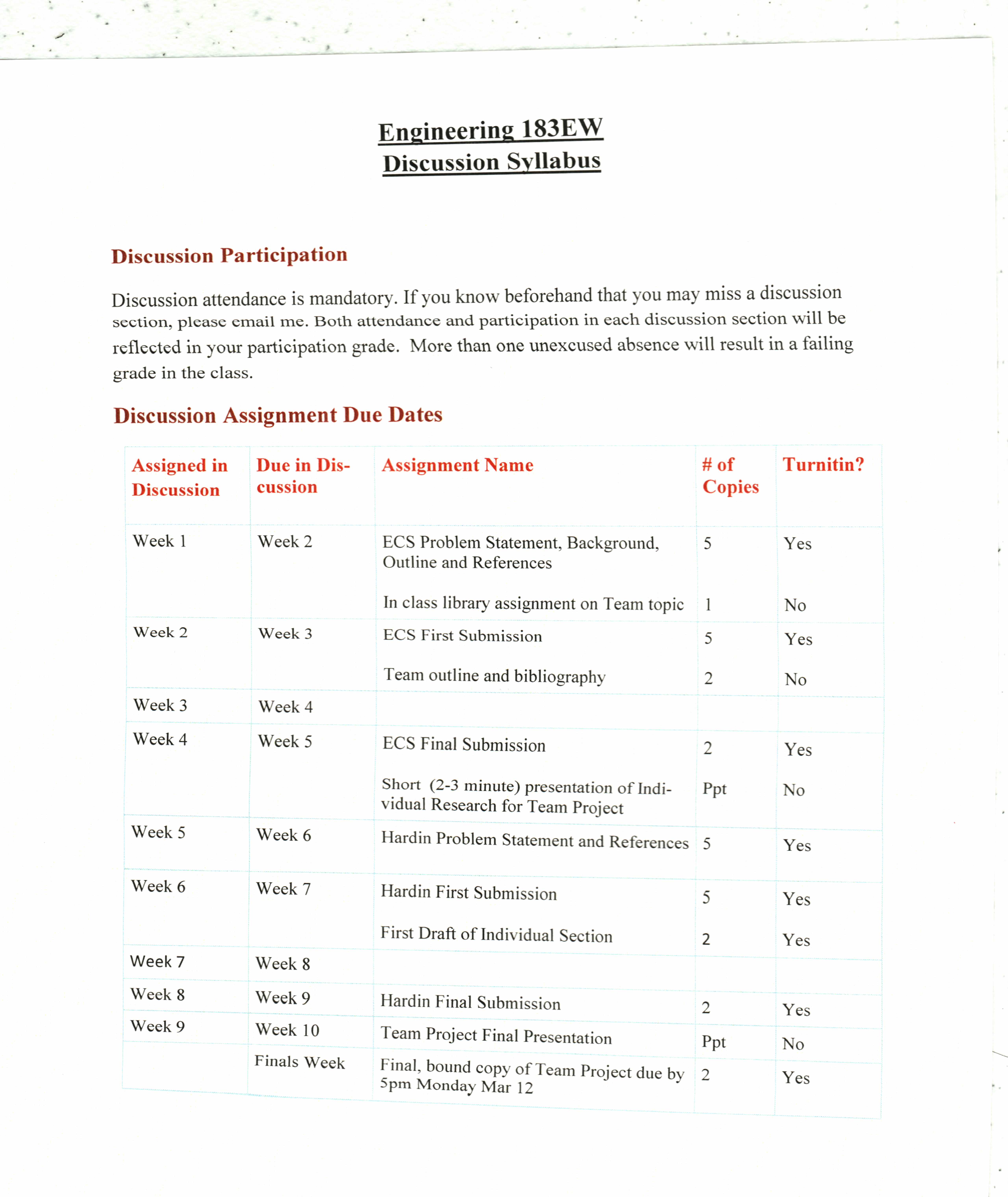First team project assignment is in Week 3 (Outline, Bibliography)
