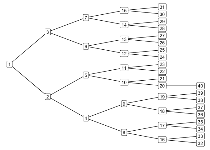 | my_tree <- create_tree(40, 2, mode = "out") | |