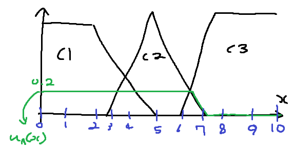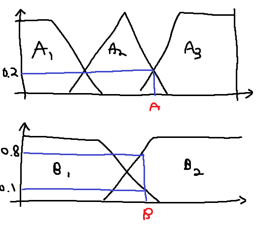 C2):x가A2ANDy가B2min(u(x = A2), u(y = B2)) = min(0.2, 0.8) = 0.2- 즉, 규칙