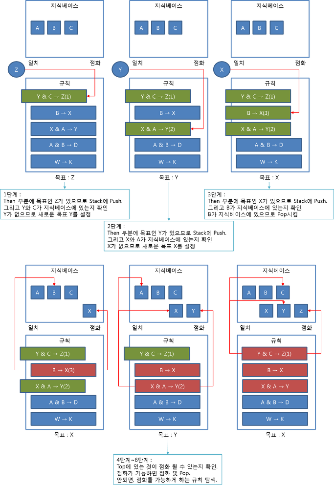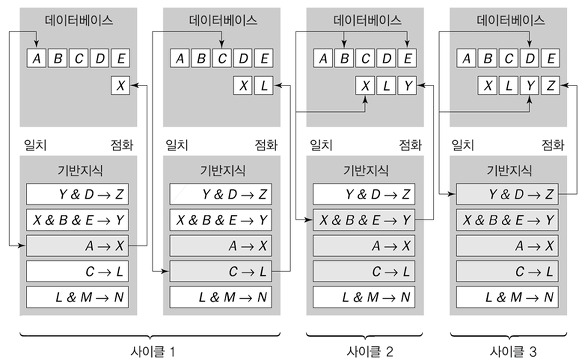 - 전향추론: 초기상태 => 목표상태 탐색