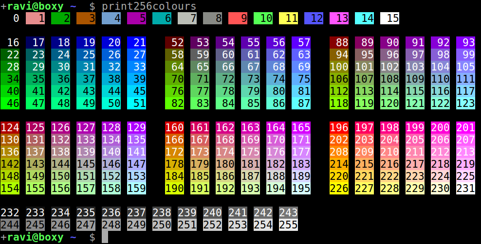 | # See http://askubuntu.com/questions/821157/print-a-256-color-test-pattern-in-the-terminal/821163#821163 | |