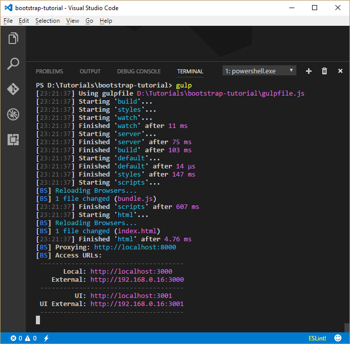 Note that this section will consist of some heavy configuration. The idea is to provide a modern work environment that allows you to easily see the changes that you make as you make them. Don't be discouraged by the initial setup work that is done. Once it's done, you won't have to mess with any of it anymore, and you'll be able to focus on learning bootstrap! During the setup of some of the features that are used, I'll explain why they are used, but not into much of the how because it would be far beyond the scope of this tutorial. If there's any interest expressed in further learning a feature beyond what's covered, I'll make sure to create a separate tutorial that specifically covers that technology. I've also added a For Later section that provides further documentation on these technologies.