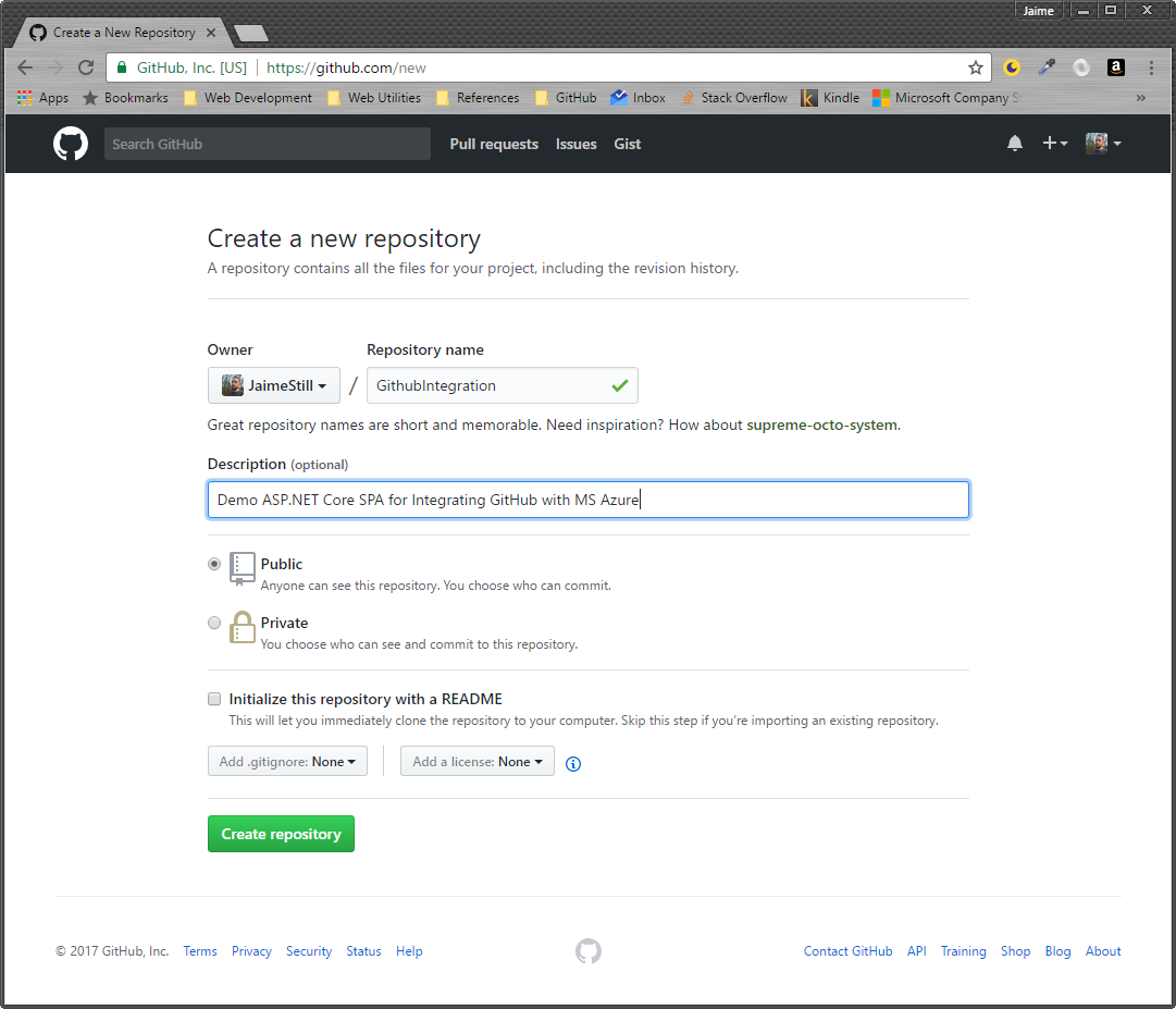 Give the resource group a name, select the associated azure subscription, select the region to host the service from, then click Create