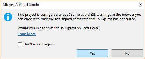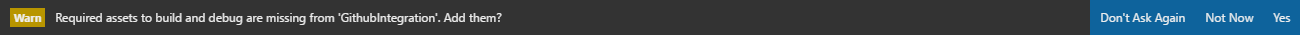 When the prompt to Add required assets to build and debug shows up, click Yes