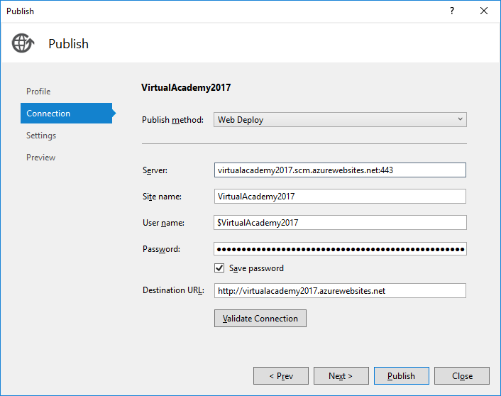 <h2>Virtual Academy Demo</h2>Either right-click the VirtualAcademy web app project, and click Publish, or from the top menu, click Build then click Publish VirtualAcademy