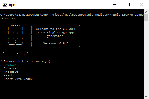 {app-dir}>yo aspnetcore-spaSelect Angular > project.json > n (no tests)