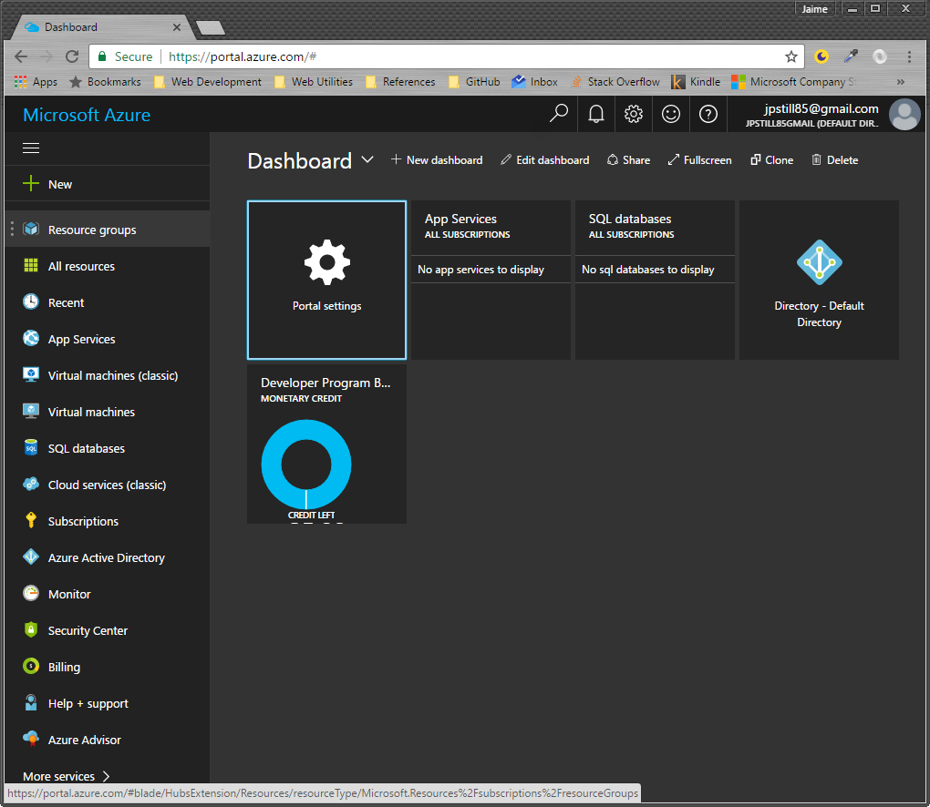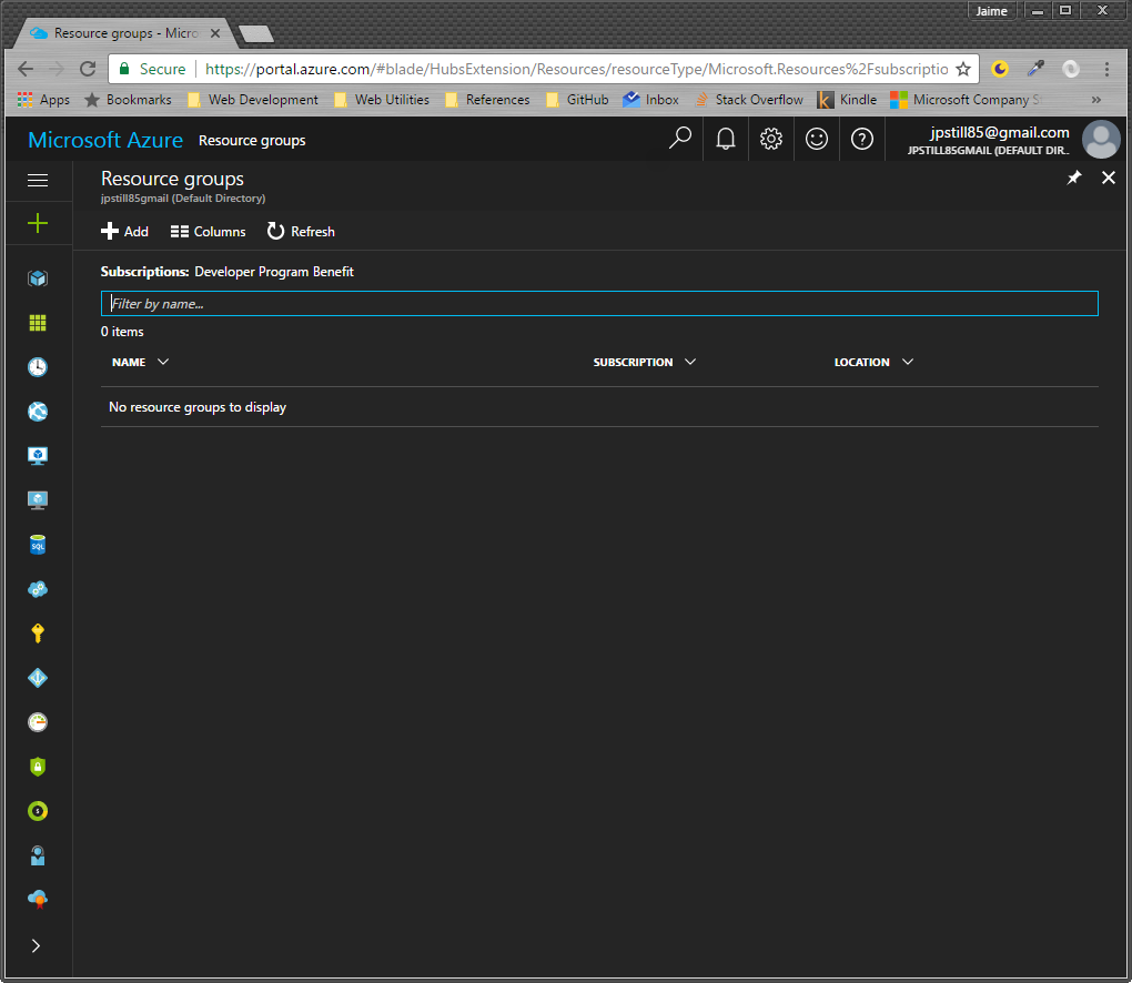On the Azure dashboard, click Resource Groups from the services list on the left side