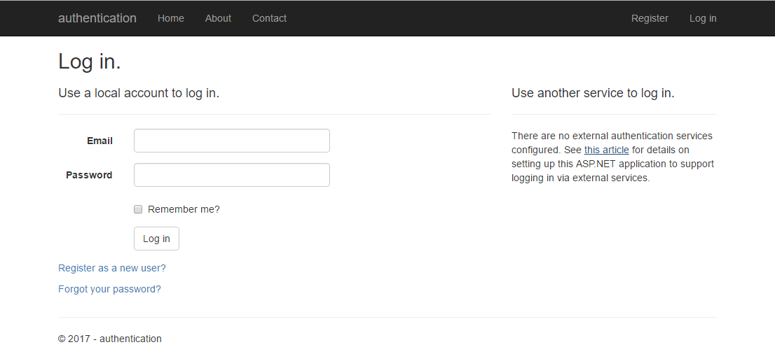 ConfirmEmail.cshtmlExternalLoginConfirmation.cshtmlExternalLoginFailure.cshtmlForgotPassword.cshtmlForgotPasswordConfirmation.cshtmlLockout.cshtmlLogin.cshtmlRegister.cshtmlResetPassword.cshtmlResetPasswordConfirmation.cshtmlSendCode.cshtmlVerifyCode.cshtml