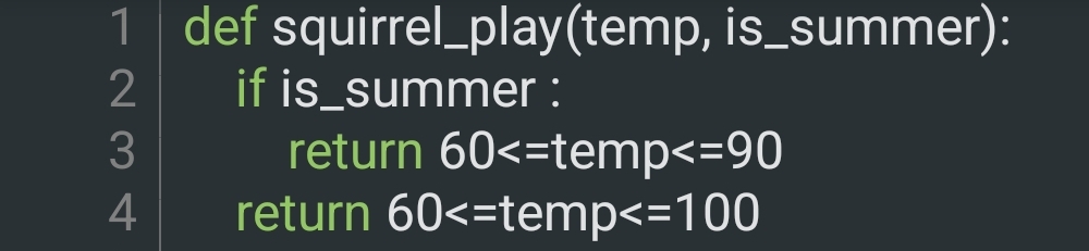 | elif not is_summer and temp >= 60 and temp <= 90: | |