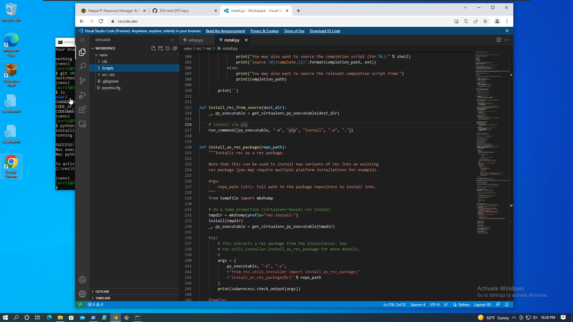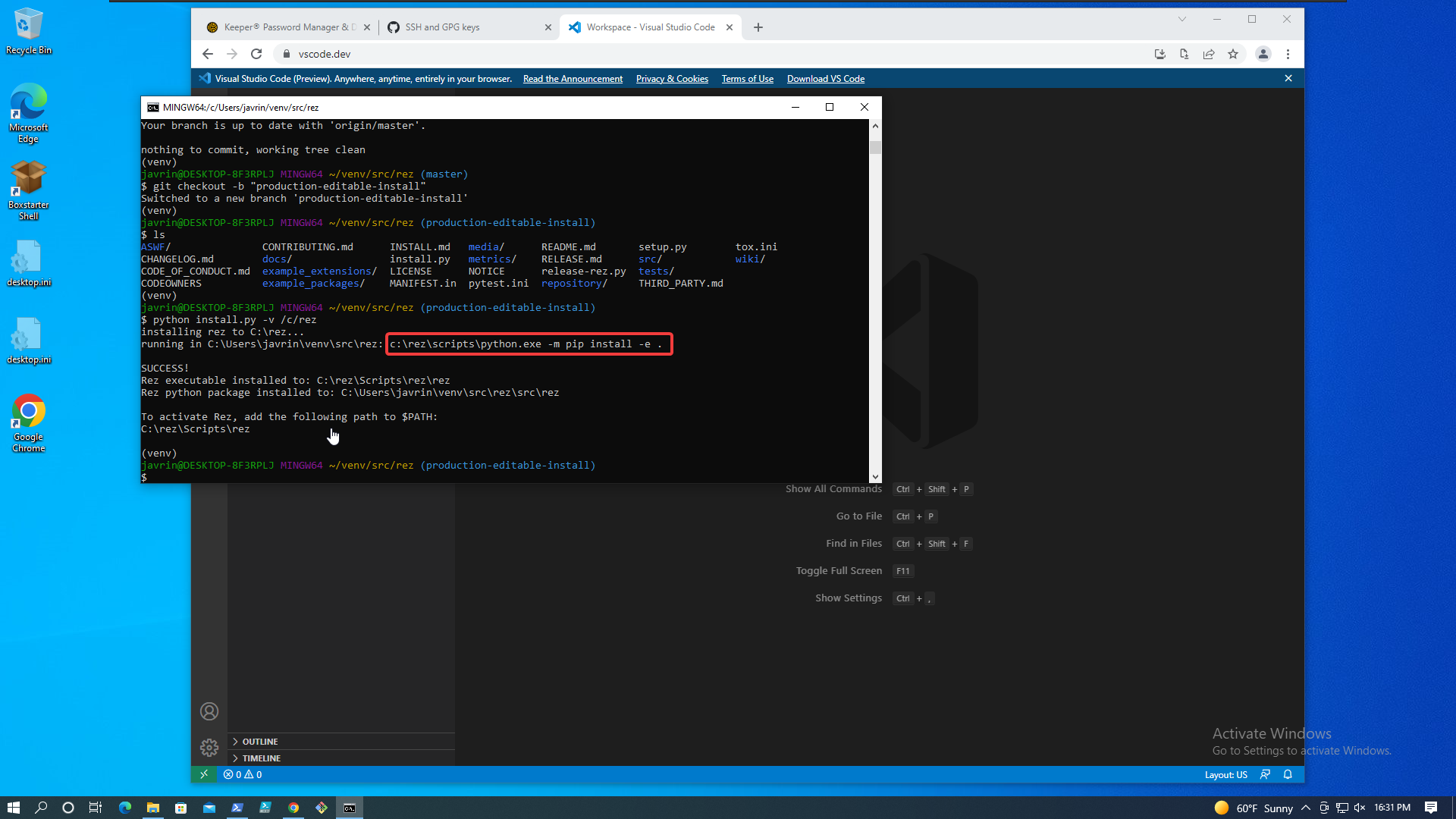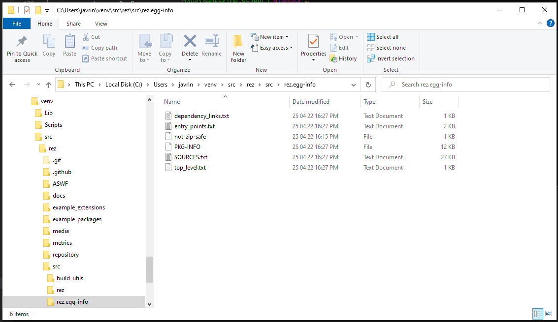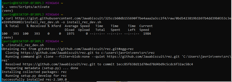 - Running `rez` with the virtual env activated executes `venv/Scripts/rez.exe`