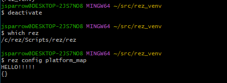 - The path to rez executable is now pointing to the production install instead of the virtual env, due to the PATH variable that was discussed earlier.
