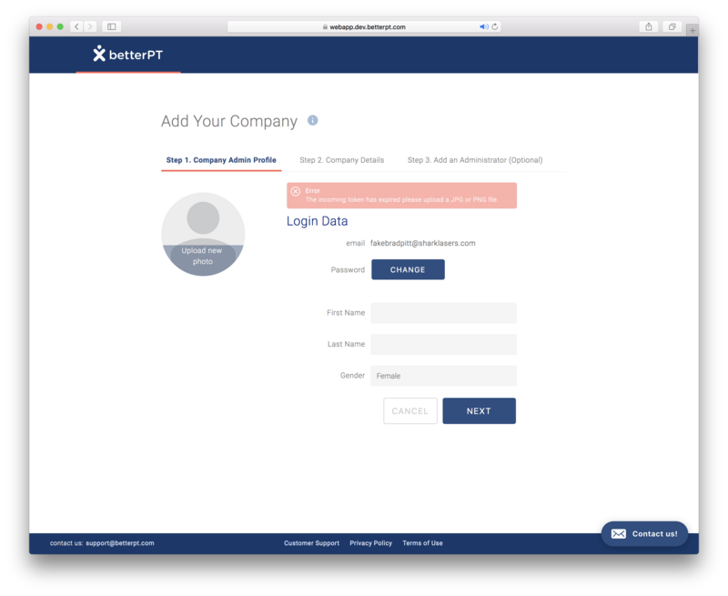 After I validated my account, I had sat on this page for a bit (> 30 min.) When attempting to upload a photo that was a 220x340 picture of Brad Pitt, it gave me the error you see in the screenshot. I'm unsure of how true the error is because I'm able to move on and fill out my name, gender and hit next (with no problem). I was also able to complete registration entirely after this without having to log back in.