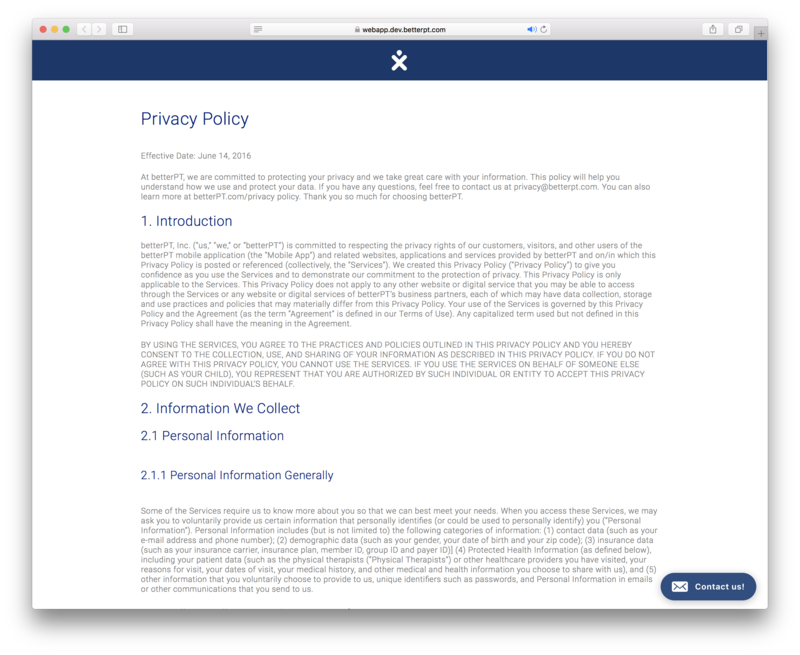 Notice that Privacy Policy has a header (titled Privacy Policy) which lets the user know what they're looking at.