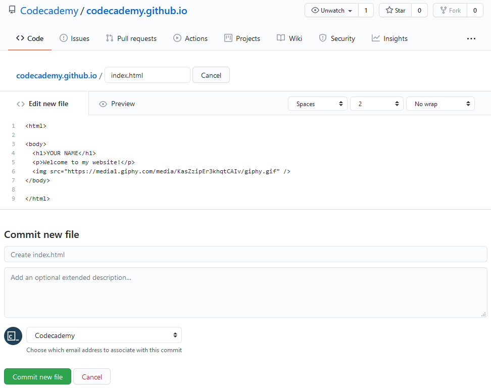 </html>You can customize the text that says YOUR NAME and Welcome to my website!.