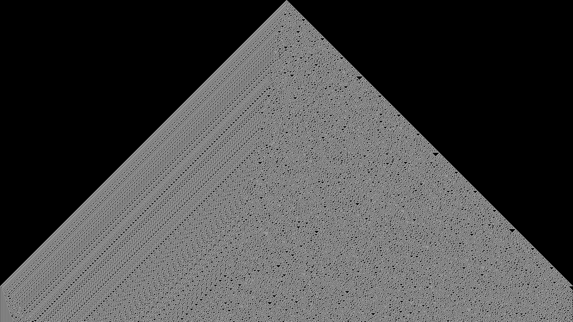 Cycling through rulesets in 1-dimensional games of life, (see signature 90 for the sierpinski triangle) in Processing according to Shiffman's Nature of Code