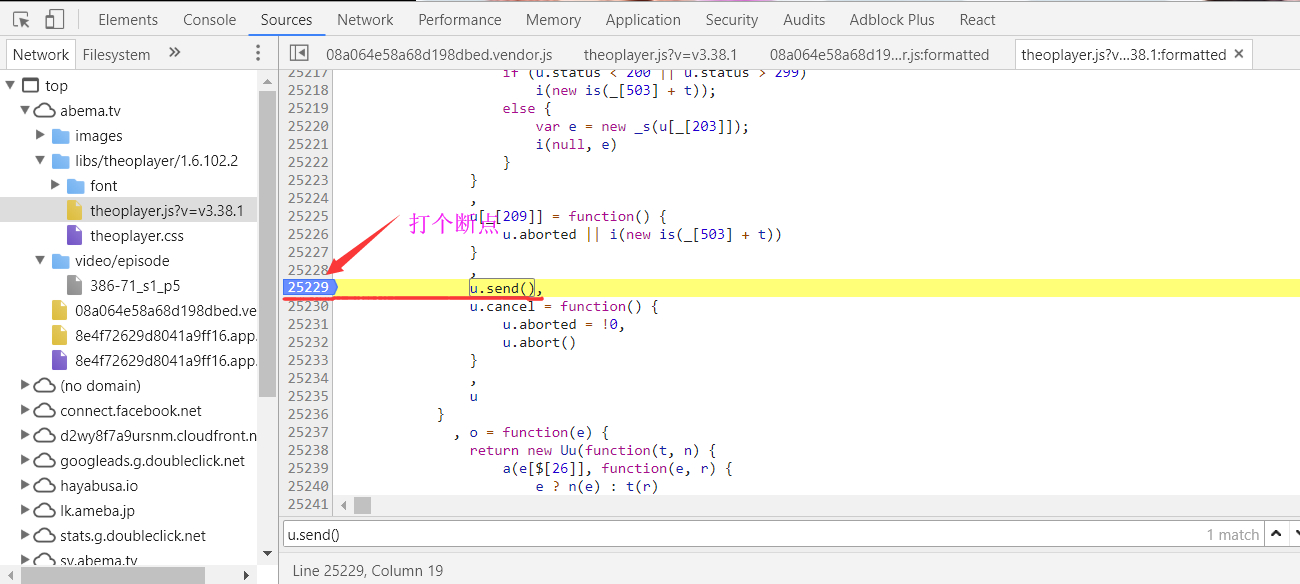 搜索 u.send(),大约25229行,打一个断点,刷新。
