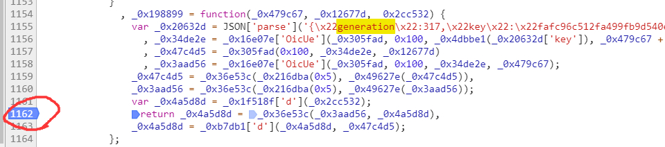 步入之后,搜索generation,大概是第一个结果的函数末尾,打一个断点。看图。