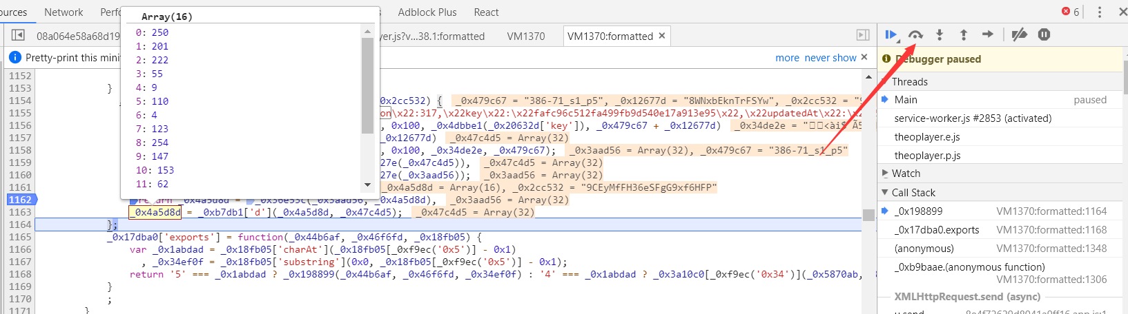 打开播放页面,开发者工具 Sources 面板。