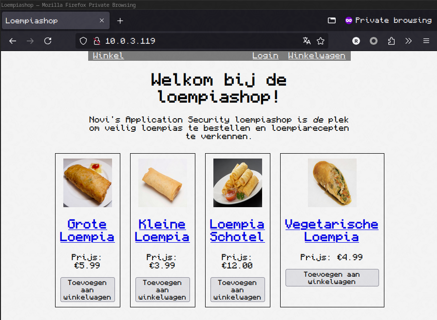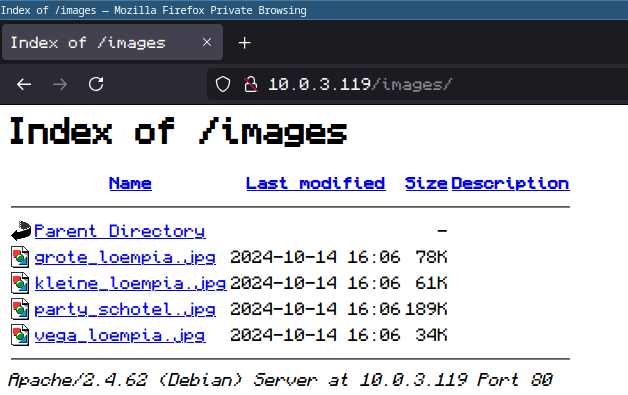 root@loempiashop:~#Het ip voor deze container is 10.0.3.119. De meeste php pagina's van de loempiashop zullen crashen omdat de database niet is opgezet, maar je kan bijvoorbeeld al bij de /images folder:
