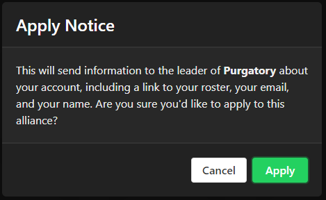 If you have any questions, feel free to DM me or ask in any of the alliance chat channels.