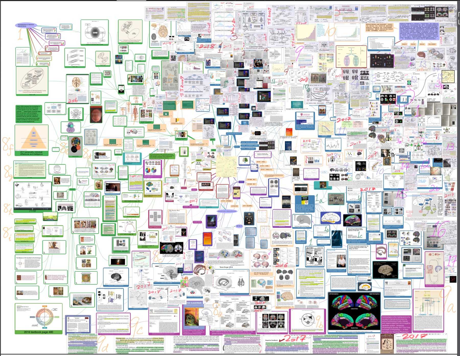 前期主要利用 Nvivo 来阅读 PDF,这个工具应该被很多人熟知,是做质性研究编码的一个主要软件。但是国外很多人用 Nvivo 来读 PDF,因为它具备很好的信息整理,归类,思维导图建立等功能,是做文献综述的大杀器。简而言之,你可以把不同 PDF 文件上的信息归为一个个节点,每一个节点代表一个知识元,以后你每一次需要用到这个知识元的时候,只需要打开它,你之前整理的所有相关论文里的信息全部都在里面,轻轻一点自动跳转到 PDF 的段落。你还可以导入语音,视频,截图,笔记等各类文件,同时用思维导图来整理这些知识元,构建二级甚至三级知识网络。