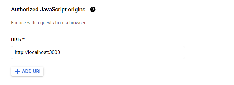 Add the Authorized Origins. Since we are in dev mode we'll use localhost, but later do change it to your own domain once you've deployed the app