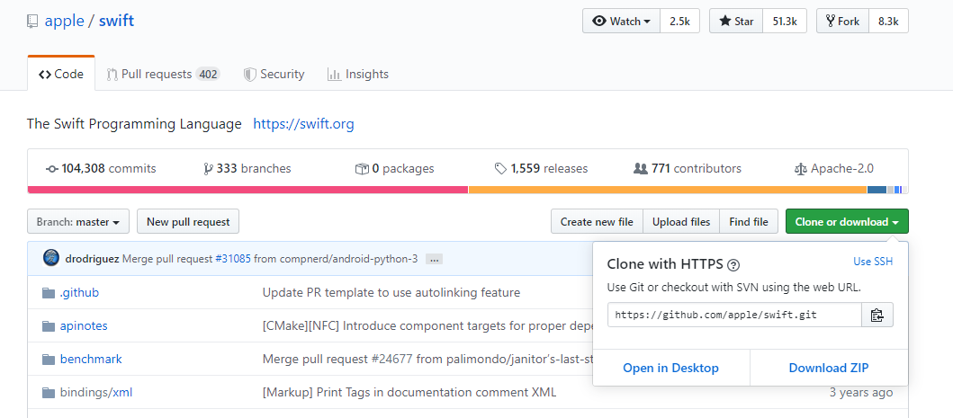 - All you have to do is click on Clone to start downloading the project.