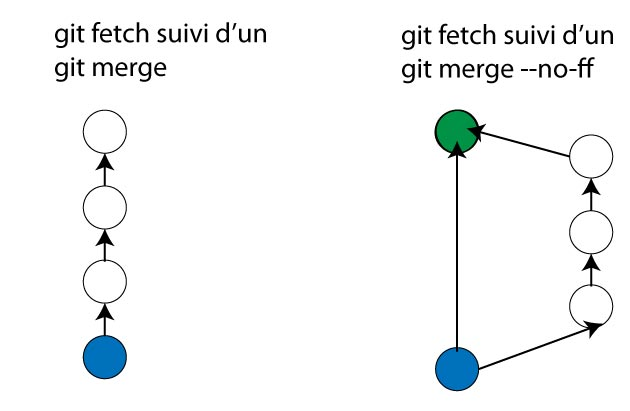 - git merge -> merges the retrieved changes with your local work. You can use the --no-ff option to create a merge commit, which is potentially cleaner and makes it easier to revert all your changes on the branch if an error has crept into your commits.