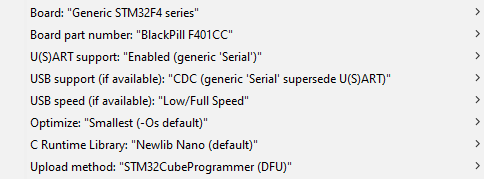 Note: If using the STM32F411 version of the black pill select “BlackPill F411CE” for the Board part number.
