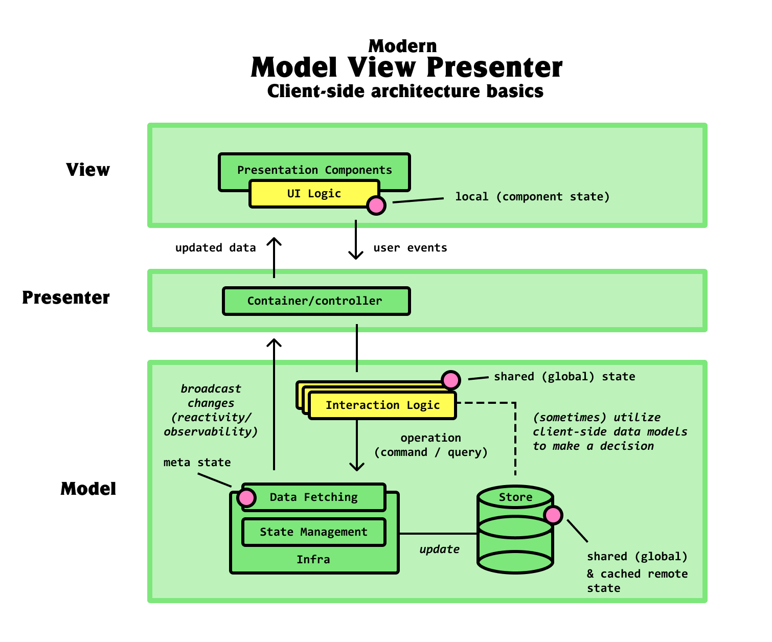 At the center is the domain layer. It is the entities and data that describe the subject area of the application, as well as the code to transform that data. The domain is the core that distinguishes one application from another.