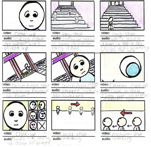 Es decir, es básicamente una serie de viñetas que se ordenan conforme a una narración previa. Se utiliza como planificación gráfica, como documento organizador de las secuencias, escenas y por lo tanto planos (determinado en el guión técnico) aquí (en el story) ya visualizamos el tipo de encuadre y ángulo de visión que se va a utilizar.