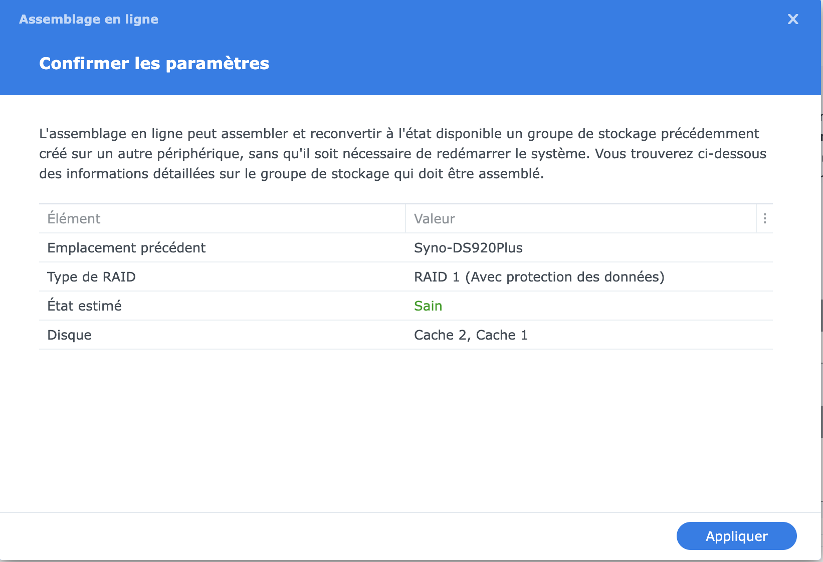 - I.7. Paramétrer le volume dans DSM et redémarrer le NAS