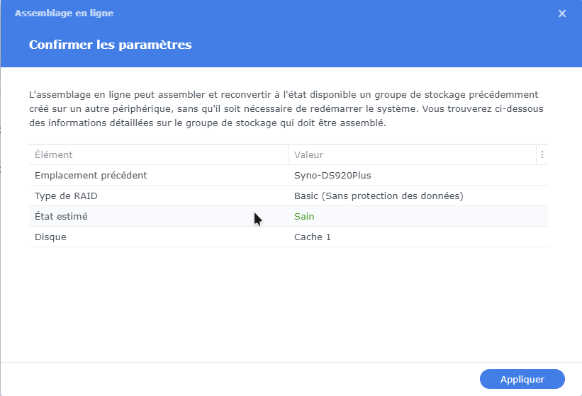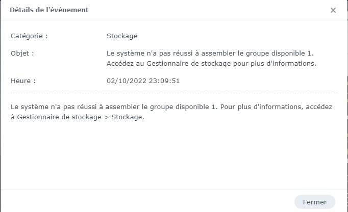 J'ai du redémarrer le NAS pour retenter la manipulation, et ça a enfin fonctionné !