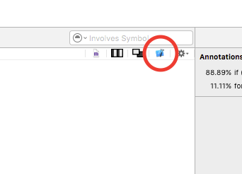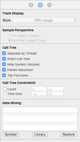언급 할 수있는 간단한 팁은 'Call Tree'섹션의 오른쪽에있는 'Extended Detail'섹션 (디스플레이 설정 옆에있는 아이콘 또는 ⌘3)을 사용하여 선택한 항목에 대한 특정 스택 추적을 볼 수 있다는 것입니다 그 스택에있는 라인을 두 번 클릭하면 Instruments가 코드의 정확한 라인으로 이동합니다. 거기에서 Xcode로 되돌아 가서 작은 방법으로 작업 할 수있는 작은 Xcode 아이콘을 클릭 할 수 있습니다.