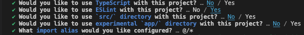 npx create-next-app@latest .Accept the following options: