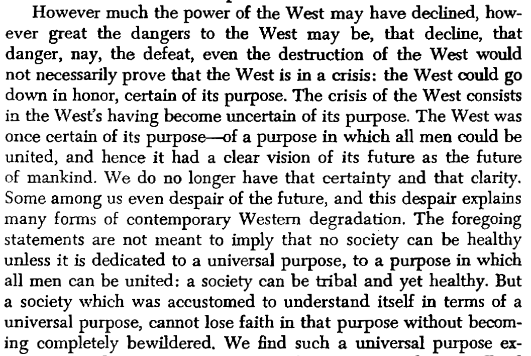- Problem with [[Leo Strauss]] - he is introducing the terminality here. The fact that decline happened doesn't mean it was deemed terminal and vice versa
