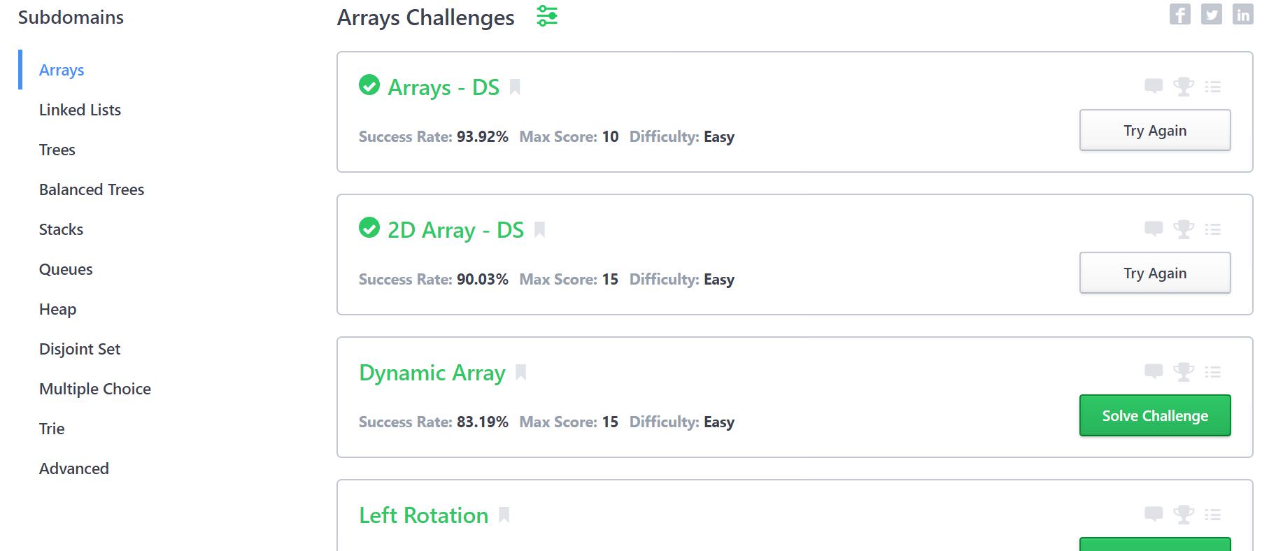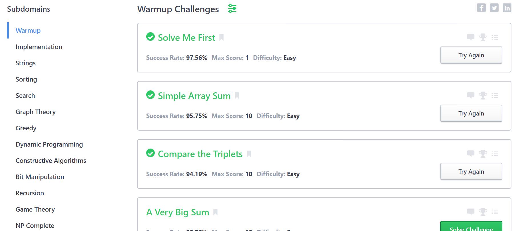 如果是剛開始刷題,可以透過寫 Hackerrank 的題目幫忙複習基本的資料結構和演算法。