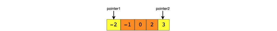 An easier approach could be to first find the index of the first non-negative number in the array. After that, we can use Two Pointers to iterate the array. One pointer will move forward to iterate the non-negative numbers, and the other pointer will move backward to iterate the negative numbers. At any step, whichever number gives us a bigger square will be added to the output array. For the above-mentioned Example-1, we will do something like this: