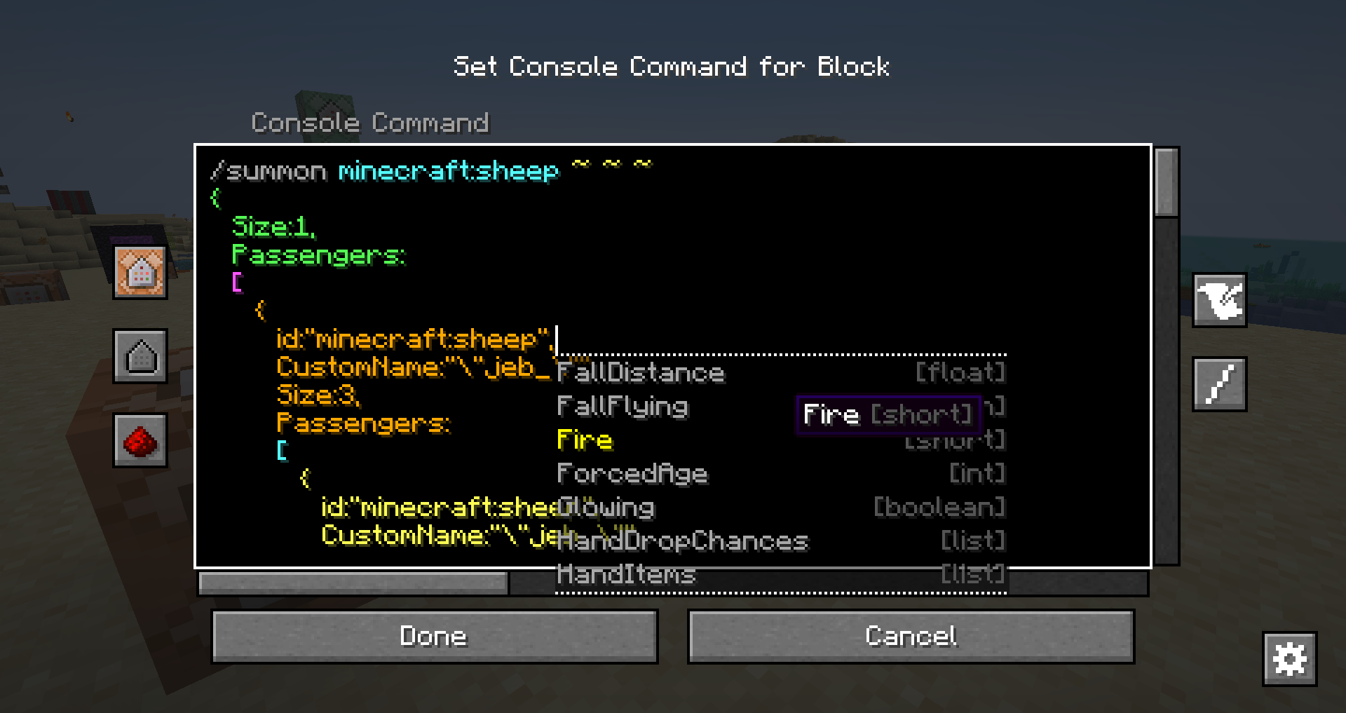 | BetterCommandBlockUI | Basically an IDE for those who are hacky enough to use command blocks. Makes it a lot easier to write commands! | ![]() |
