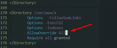 vim /etc/apache2/apache2.confAltere de None para All