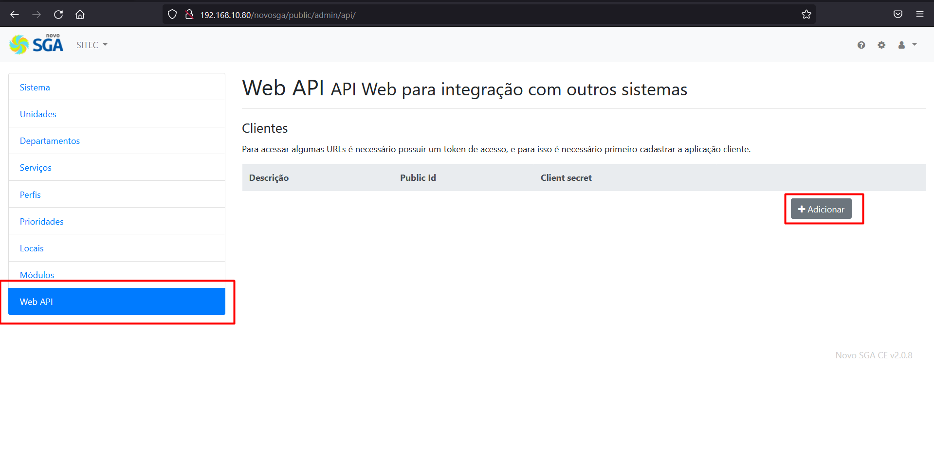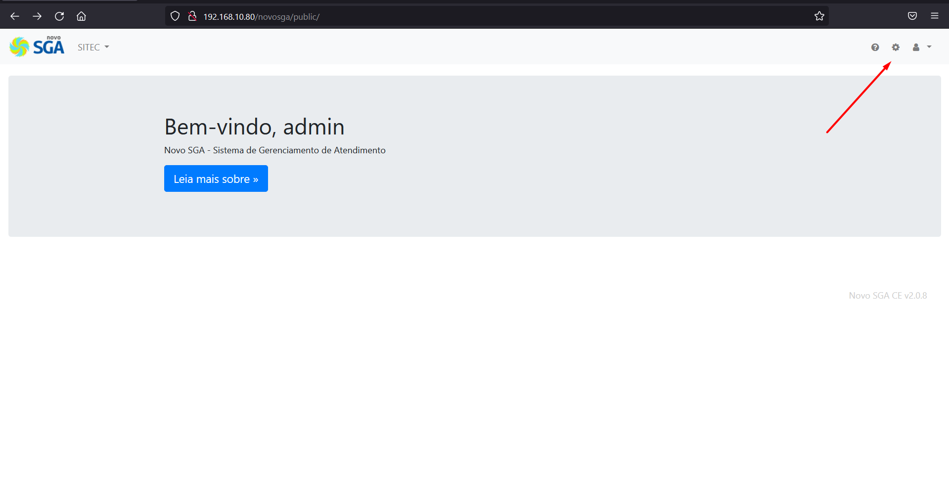 Agora, via navegador de internet acesse a console de gerenciamento do Novo SGA: