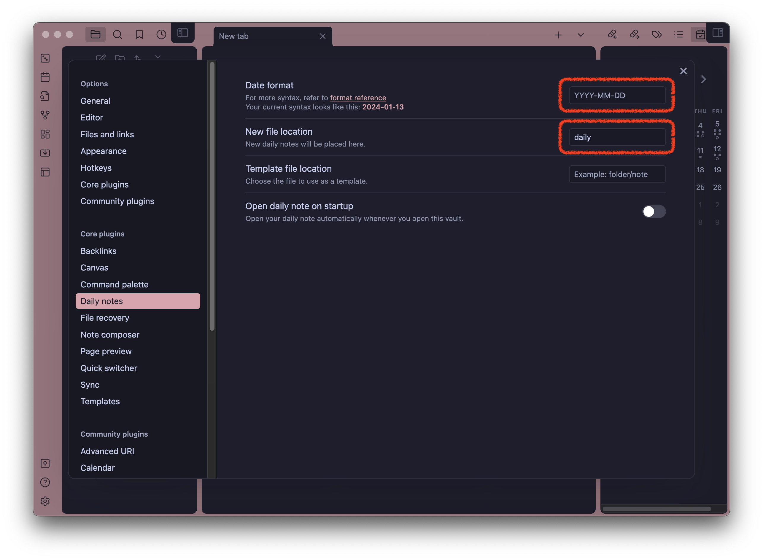 core plugins: Backlinks, Bookmarks, Canvas, Command palette, Daily notes, File recovery, Files, Graph view, Note composer, Outgoing links, Outline, Page preview, Quick switcher, Random note, Search, Tags view, Templates, Word count, and Workspaces. -