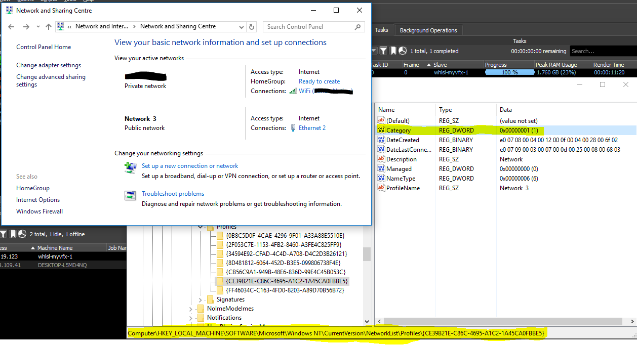 regeditnavigate toComputer\HKEY_LOCAL_MACHINE\SOFTWARE\Microsoft\Windows NT\CurrentVersion\NetworkList\Profiles\ - Select each of the branches in the tree view